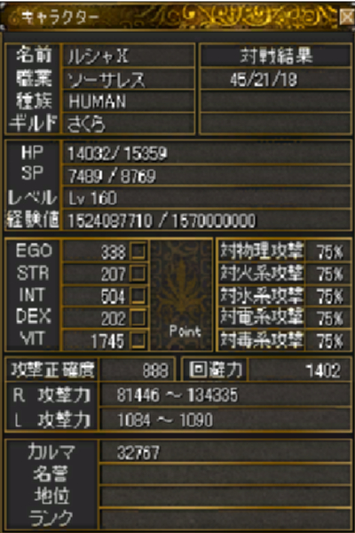 まぁ折角なんで160になったステでも載せてみます(*´ ω `)